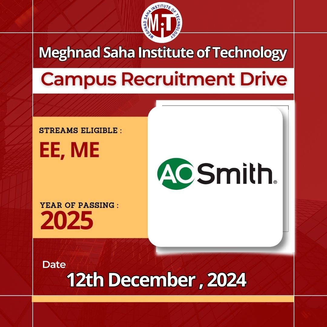 AO Smith campassing on 12th December 2024 , for EE & ME , 2025 passout