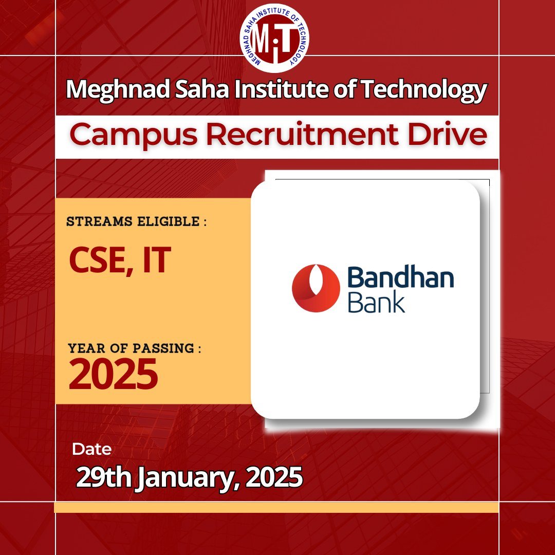 Bandhan Bank campassing on 29th January 2025 , for CSE, IT , 2025 passout