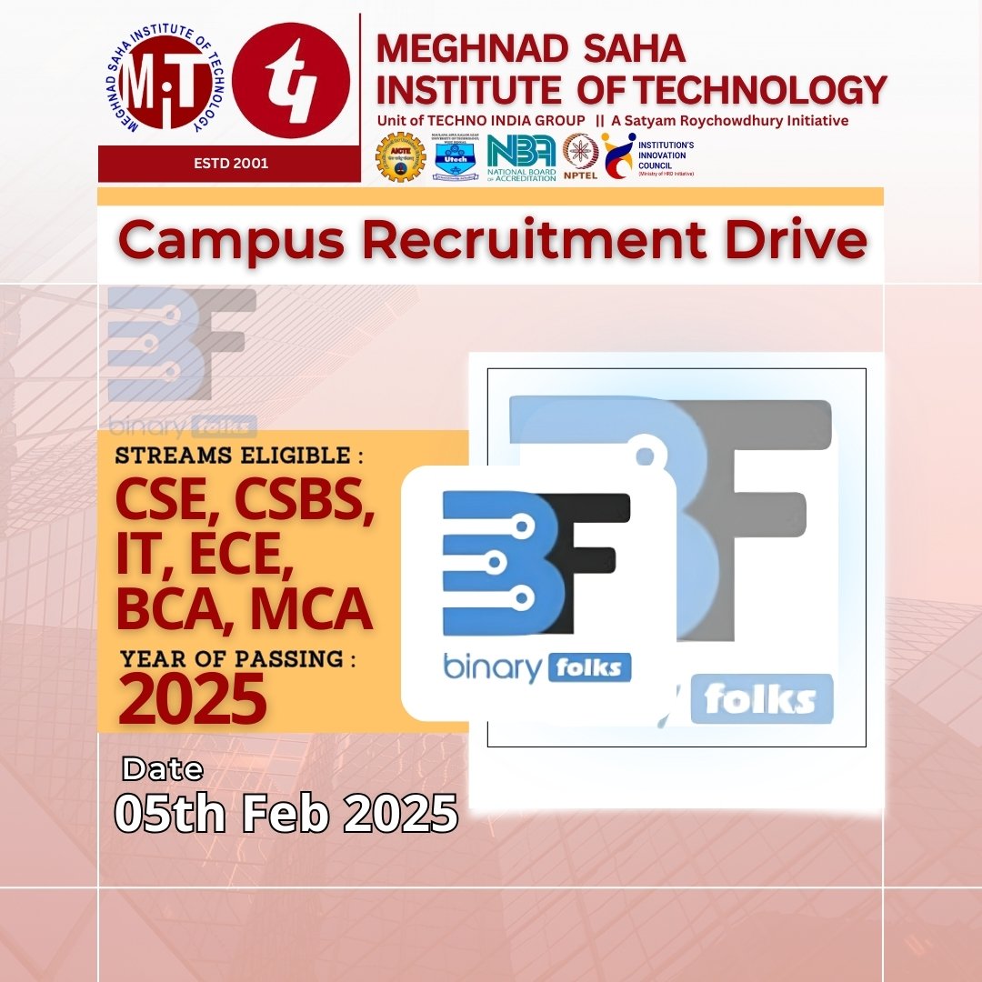 Date: 05.02.25 Company: Binary Folks Streams Eligible: CSE, CSBS, IT, ECE, BCA, MCA YOP: 2025